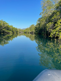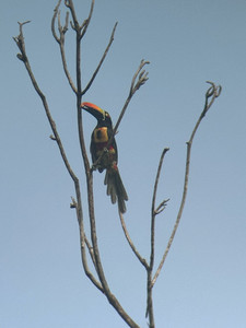 Birding was a highlight of Costa Rica, and by the end I added 14 new birds to my life list (birds I see with my own eyes long enough to positively ID). Some of the best was during a dinghy trip into the mangrove estuary in Ballena Bay. We timed it to drift in with the end of the rising tide and drift out as it began to ebb. Without the motor, we could ghost along and see and hear the wildlife. We identified Scarlet Toucans, Green Herons, Great Kiskadees, and Rufous-backed Wrens.