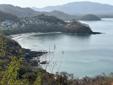 We made three nice stops at anchorages heading south out of Papagayo where we enjoyed swimming, snorkeling, and paddleboarding. One of the most pleasant was Danta Bay, where we could paddle into shore to the lovely Los Catalinas development. This recently built village is well situated to enjoy the great mountain biking and hiking in the area and is filled with beautiful villas, restaurants that reminded us of an upscale ski village filled with tourists and part-time residents. We loved the hiking, the beach, and the restaurants. I was able to replace my blown-out flip-flop at the Patagonia store. We had a great time but almost forgot we were in Central America and couldn’t help but think that it lacked a bit in local culture.