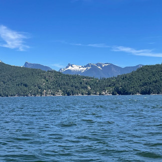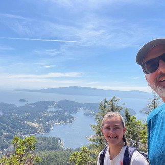 Further north today into Pender Harbor, where we anchored just outside of Garden Bay. Pender Harbor is huge, and by total coincidence, we found our friends Jay and May, fellow Hallberg-Rassy 46-ers, on Present Moment here. My dad and I also embarked on a huge expedition: biking then hiking to the top of Mt. Daniels overlooking the entire harbor and farther out to Texada Island. It was a total of 1200 vertical feet up and only 1.3 miles, the steepest mountain I’ve ever climbed but totally worth it!