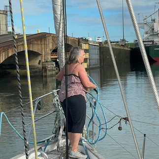 At this point, we were pinned to the wall, the water rushing past the boat like a river. Nick sprang into action and began calling to the shore man in Spanish, imploring him to secure the loop, which he finally did. Now three crew aboard hauled hard together to pull the mooring line in and slowly pry us off the wall. Soon we were safely back in the middle of the lock, having suffered only minor damage to our solar panels at the stern. The whole episode lasted only a few minutes, though it seemed like a lifetime, and most importantly no one was hurt. We never learned why the man ashore didn’t drop the loop over the bollard. Unfortunately (or perhaps fortunately) we didn’t get any pictures of this “episode.”